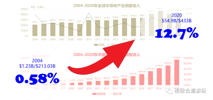 2004年,我们的芯片产品在全球市场的占有量只有0.58%;2020年,我们的全球市场的占有量达到了12.7%。 之前提到,中国是最大的单一半导体市场,占世界市场的35%。按价值计算,我们只能满足12.7%,还有20%多就要完全靠进口,因此中国芯片进口量非常大。