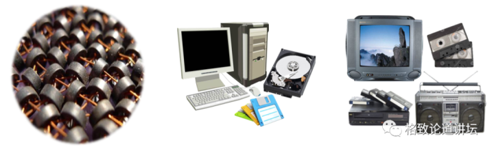 磁芯(左),磁盘(中)和磁带(右)
