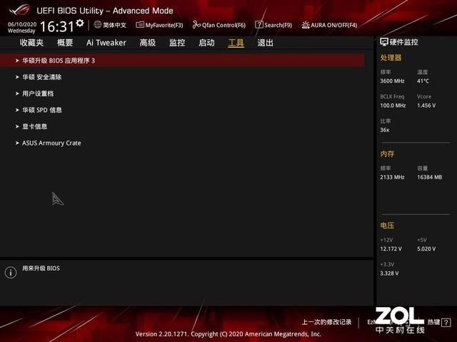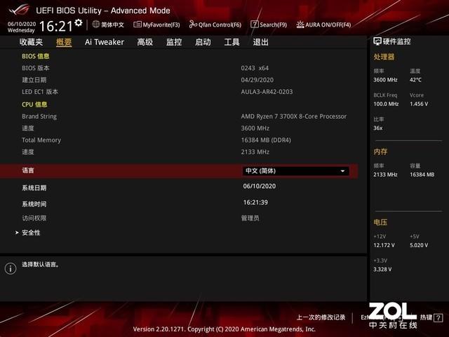 注意事项:三代锐龙很看重内存频率,因此如果使用三代锐龙与华硕 ROG STRIX B550-F GAMING (WI-FI)组成平台,想要性能发挥出色建议搭配3000MHz频率以上的内存,并在组装平台之后进入BIOS界面开启XMP设置,华硕的BIOS操作很简单也支持中文,这点到不用担心。