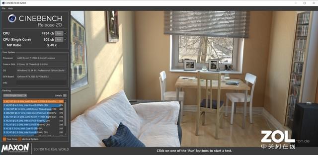 我们先看一下CINEBENCH R20的成绩,CINEBENCH是业界公认的基准测试软件,在国内外主流媒体的多数系统性能测试中都能看到它的身影。