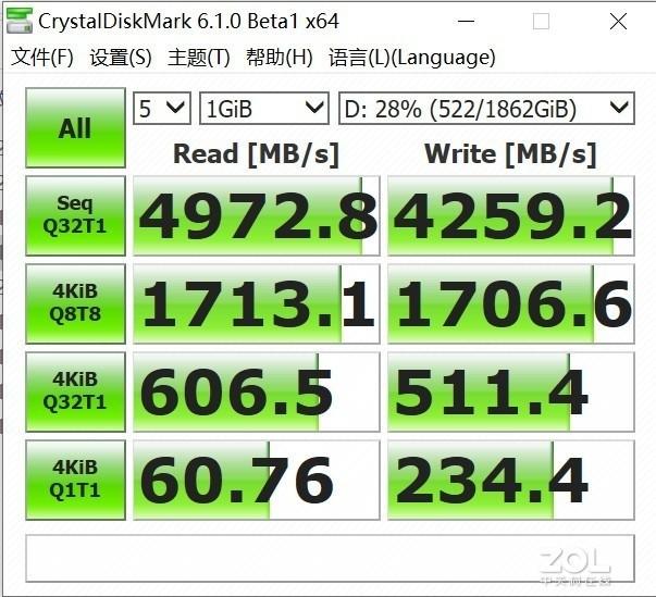 接下来我们用硬盘基本测试软件CrystalDiskMark来进行PCIe 4.0的测试。