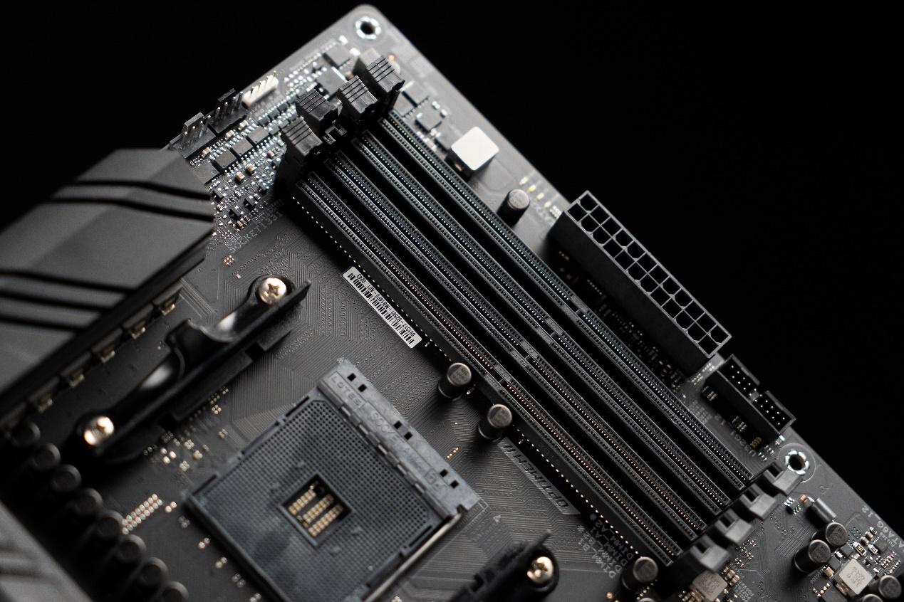 内存方面,华硕ROG STRIX B550-F GAMING(WI-FI)拥有4条DDR4内存插槽,由于AMD对内存超频方面的限制比较宽松,所以我们可以看到该主板和旗舰级的X570一样可以支持频率更高的内存,其最高能够提供DDR4 5100MHz(OC)的内存频率和超频支持,同时还能支持最大128GB(单条32GB)的内存容量,无论是在速度带宽还是容量方面都有保障。在这背后是华硕OptiMem II内存优化技术提供支持,通过优化的内存走线,能够提高信号完整性,减少干扰,从而有效提升内存兼容性和超频空间。