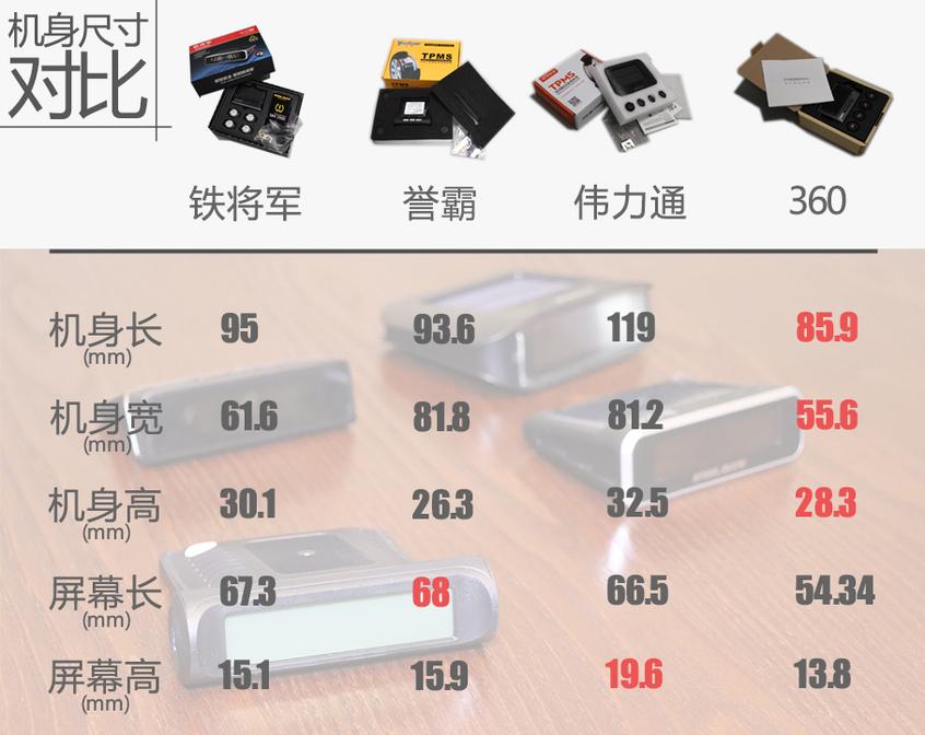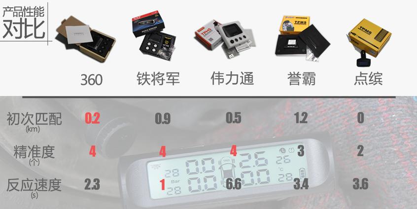 编辑总结: 至于哪款外置胎压监测更具性价比,当然还要有价格作为最基础的参考,我们揭露的价格均来自网购渠道,誉霸65元、360为199元、铁将军229元、伟力通239元,而点缤最贵339元。