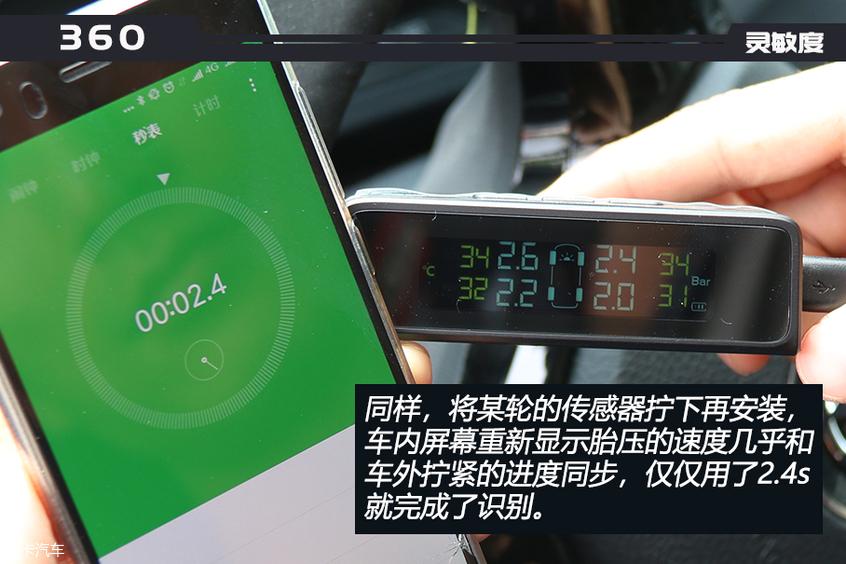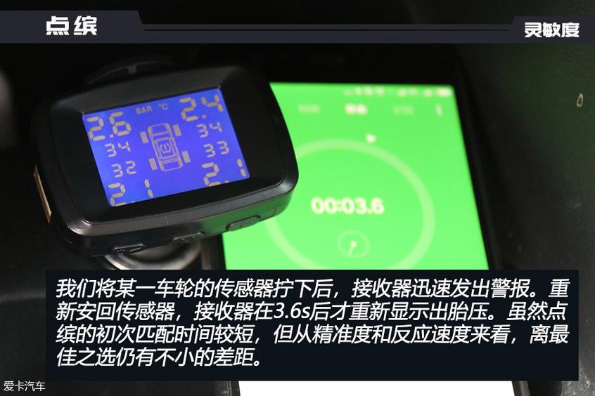 小结: 受外置胎压监测器结构的影响,我们不能通过放气实验测试监测器的灵敏度,但通过匹配时间、胎压显示精准度和重新安装传感器的识别时间,可以大致比较出传感器和接收器间的配合程度。