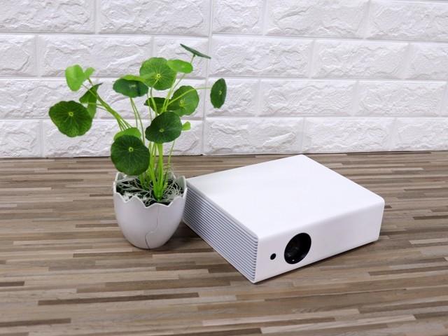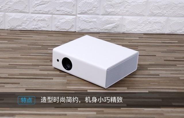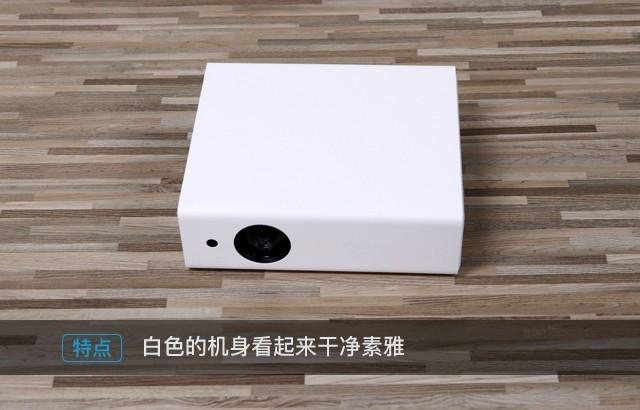 据笔者了解,艾洛维Me2c智能微投一共有四种外观颜色,用户可以根据喜好选择自己最钟爱的产品。本次评测我们拿到的是白色的产品,整机看起来干净素雅,造型方正简约,非常适合放在室内环境中。