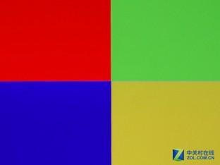 在四色图的对比中可以看到,艾洛维Me2c智能微投的整体色彩还原度较好,没有出现严重的色彩漂移。但是蓝色部分略显偏紫,另外黄色和绿色的饱和度稍有欠缺。