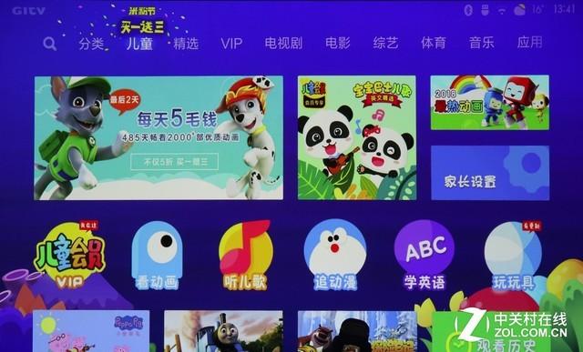 艾洛维Me2c智能微投搭载了基于安卓6.0深层优化的Miui TV智能操作系统,系统的UI界面简洁直观,日常使用非常方便。系统内的资源被划分为儿童、电影、体育等多个板块,用户可以快速找到自己想看的影视资源。