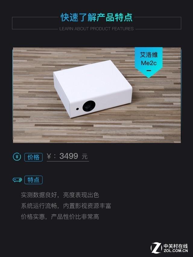 另外智能系统也是本机的一大亮点。艾洛维Me2c搭载的智能系统运行流畅快捷、UI设计简洁直观。系统内置有丰富的影视资源,从热门大片到儿童动漫应有尽有,可以很好的丰富用户的业余时光。综合来看,艾洛维Me2c智能微投是一款性能出色、价格合理的产品,非常适合家庭用户。这款产品目前在京东火爆预售中,感兴趣的朋友可以。
