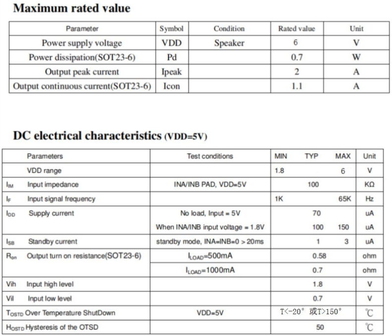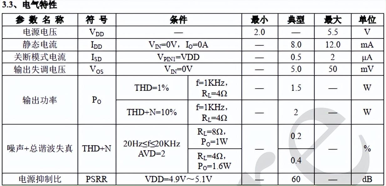 (4)输出功率最大2.3W(5V/4ohm/STP23-6)