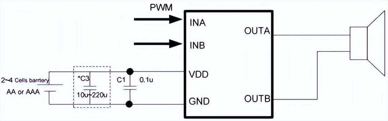 WT1312,PWM音频功放芯片应用电路