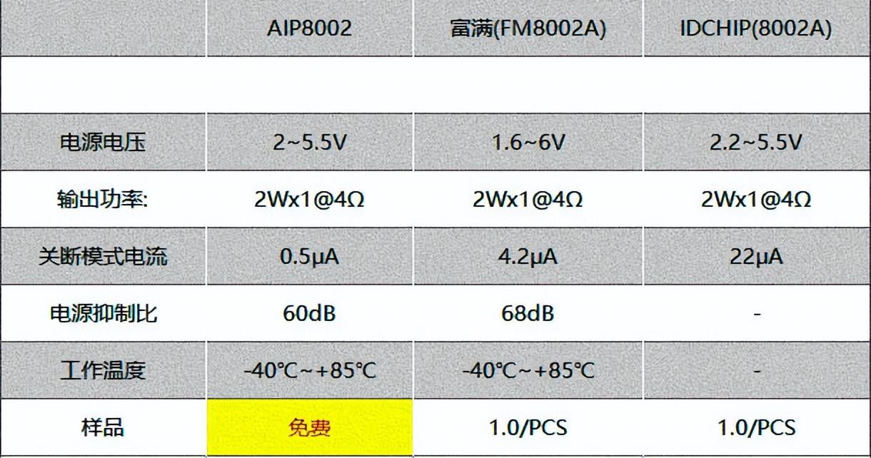 功放芯片选型表