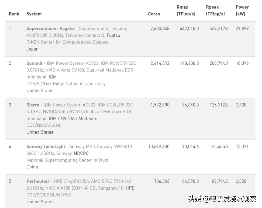 全球超算最新排名!ARM架构处理器雄踞第一,国产太湖之光排第四