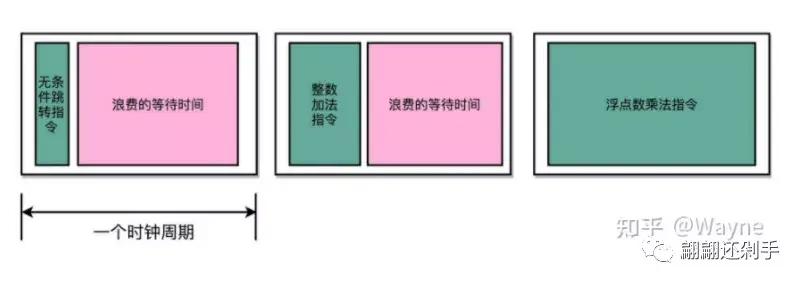 从上图可以看出,时钟周期是固定的,但是每个指令执行用时不同,所以需要提高CPU执行效率。