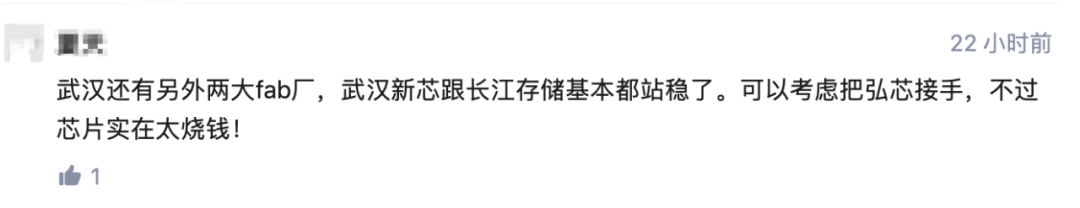 对于弘芯的失败,有网友表示,武汉还有另外两大fab厂,武汉新芯跟长江存储基本都站稳了。可以考虑把弘芯接手。武汉新芯,仍是这座城市芯片产业的奠基石与灵魂。