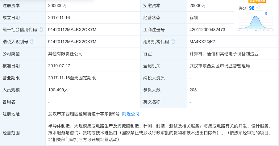 武汉弘芯半导体从一开始,一直保持着神秘,名字鲜少有人知道。从天眼查上可以看到,注册资金20亿元。