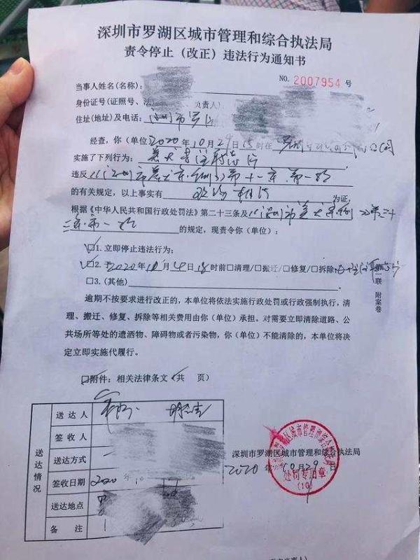 清水河街道执法队开出首张责令停止(改正)违法行为通知单。