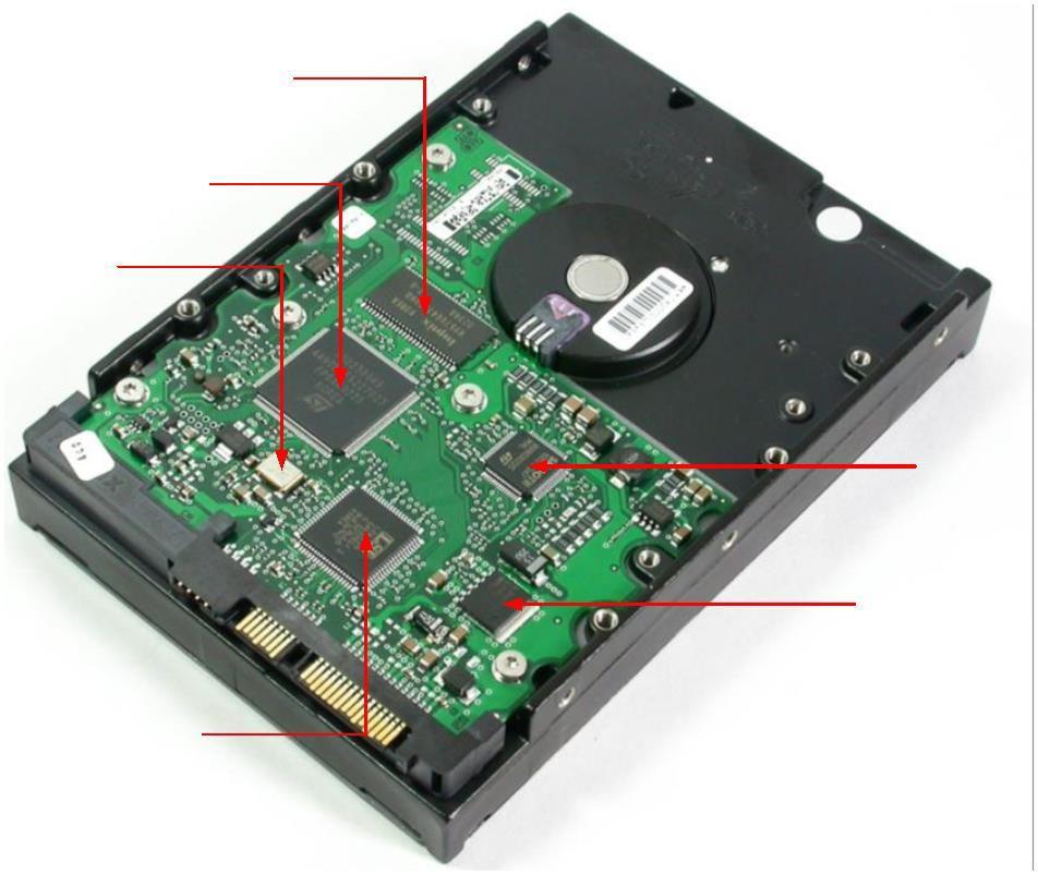 硬盘的电路板主要由主控制芯片(即CPU)、电机驱动芯片、缓存芯片、数字信号处理