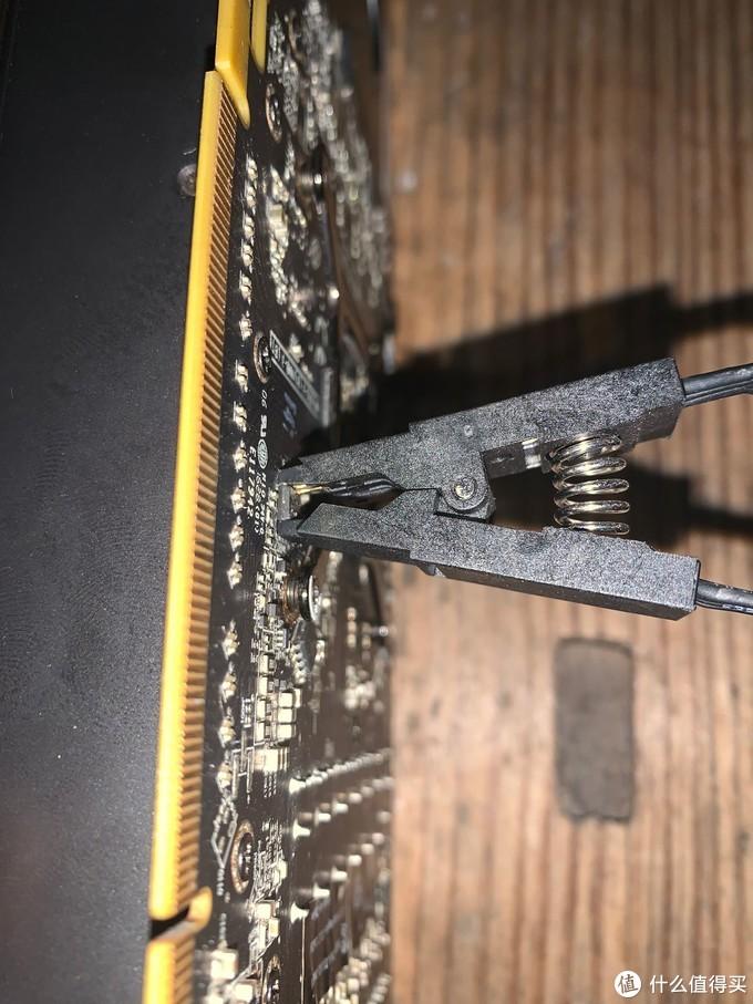 一般来说bios芯片都在显卡核心附近,像这卡的bios芯片是在核心背面的附近