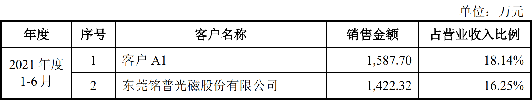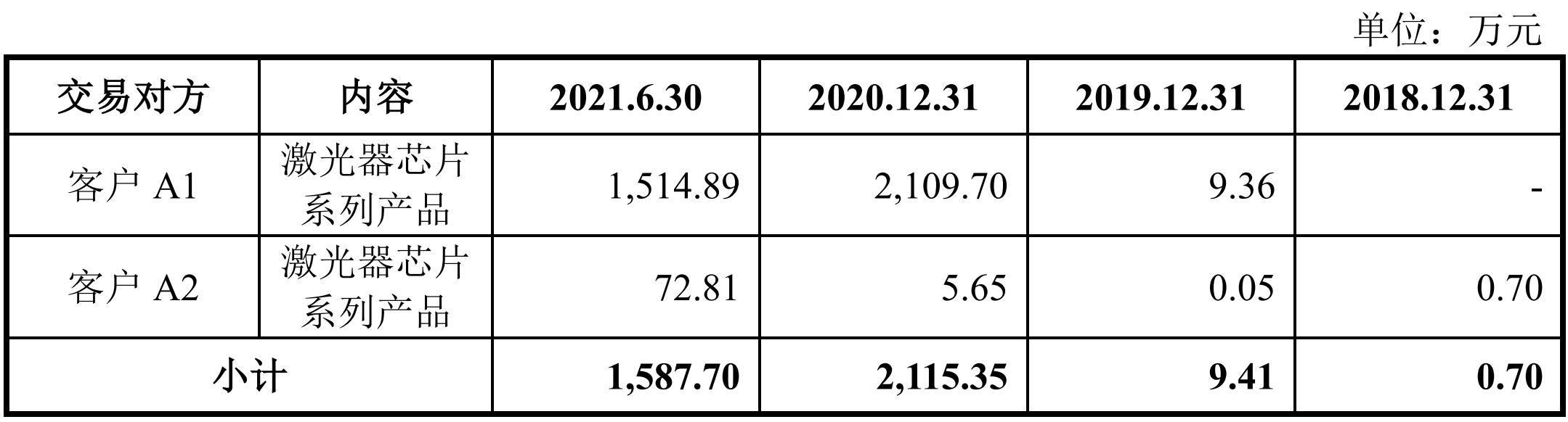 记者注意到,源杰科技有一名大客户未透露具体名称,仅用“客户A1”替代。据源杰科技披露,客户A1受客户A2控制,客户A1与客户A2是公司股东的关联方。