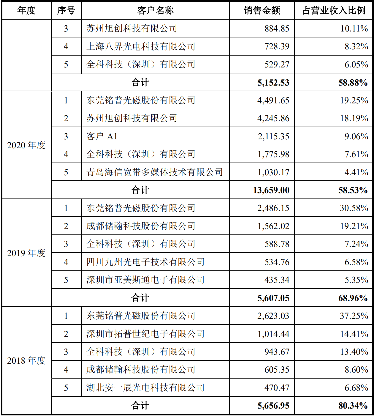 另外,源杰科技持股6.71%的股东宁波创泽云投资合伙企业(有限合伙)于2018年10月入股,背后持股86.46%的有限合伙人为苏州旭创。2020年、2021年上半年,苏州旭创都位列源杰科技前五大客户,2020年销售金额超过4000万。