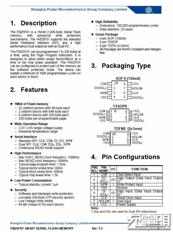 非挥发存储器SPI NOR Flash,型号FM25F01,来自FM复旦微。