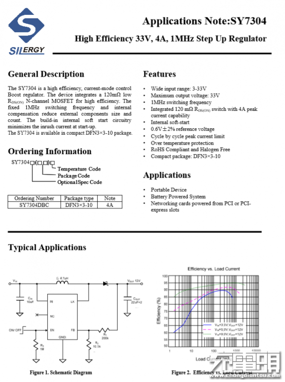 矽力杰 SY7304,升压转换器,外置肖特基。