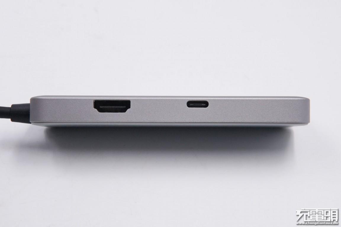 ACASIS阿卡西斯迷你集线器CM005底部采用塑料壳封装以降低产品重量方便携带,其余外壳采用铝合金打造,表面表面阳极氧化和喷砂处理,触感好且外观精致美观。产品集成了HDMI、USB3.0、雷电3和SD/Micro SD卡槽,日常充电和传输数据快人一步,享受飞一般的感觉。