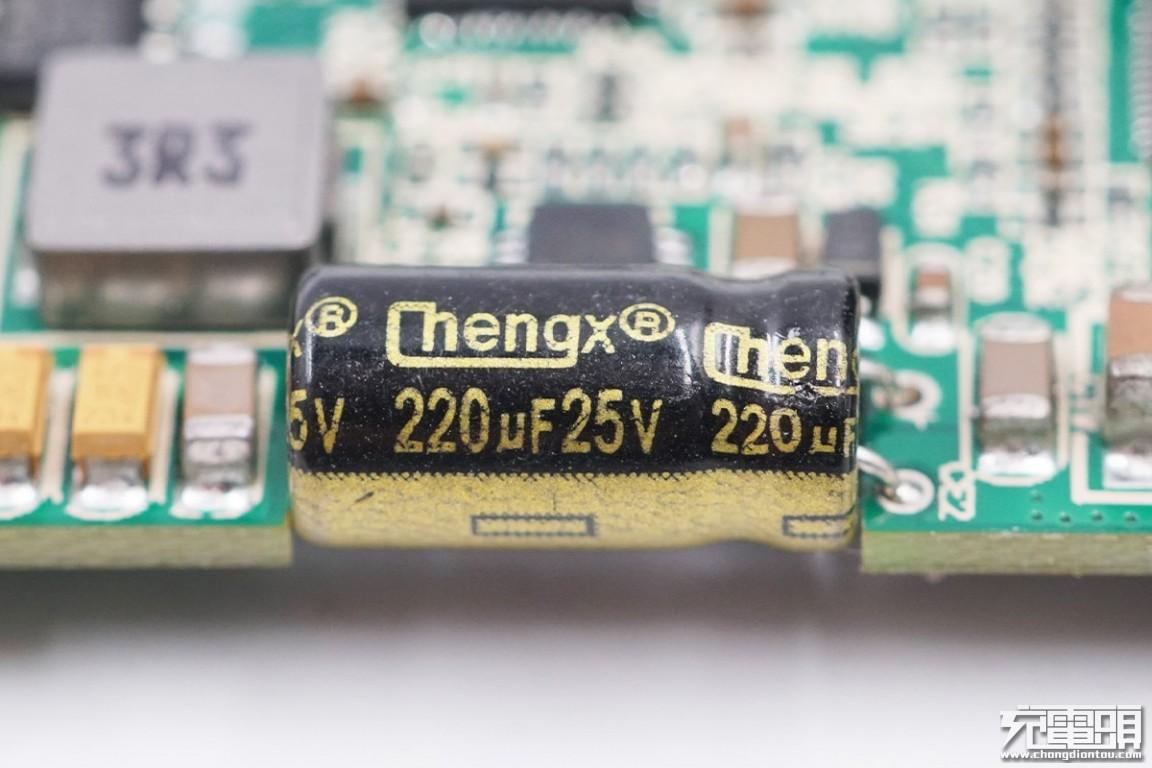 ChengX承兴电解电容25V 220μF,对应板子镂空放置。