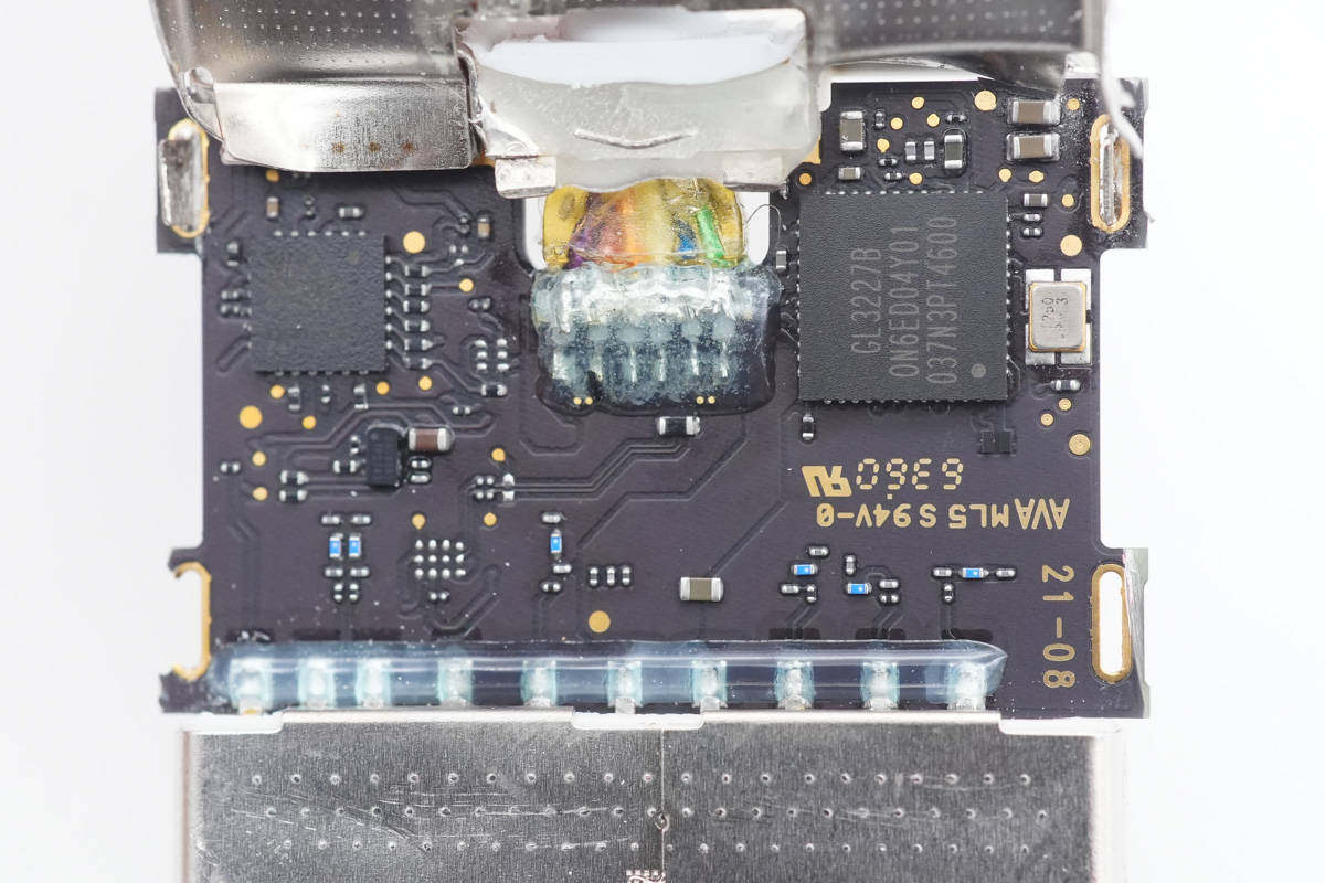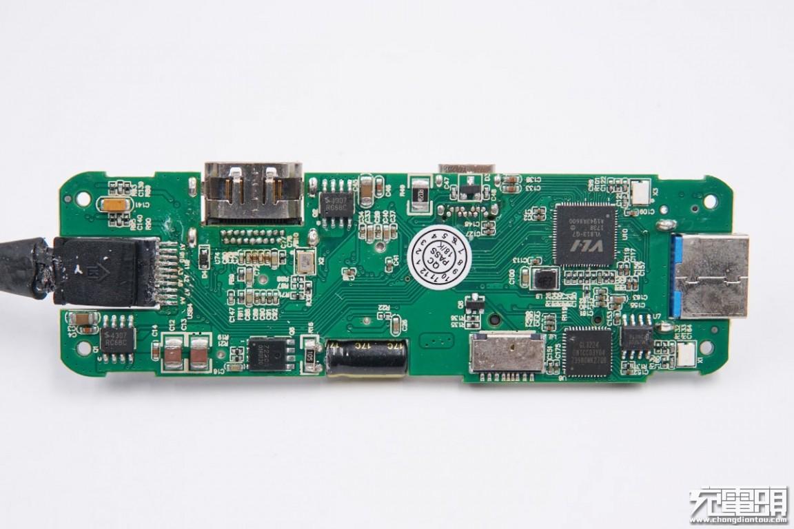 充电头网通过拆解发现,内部使用了谱瑞PS176HDM、创惟GL3224、威盛VL813和VL102、普冉P25Q40H、致新科技G547E等多款芯片,用料扎实。主要发热芯片上还贴有导热垫帮助导热,所有接口均沉板过孔焊接,降低产品厚度并增强牢固性,USB-C线缆比普通数据线更加粗壮。产品整体做工好,经久耐用。