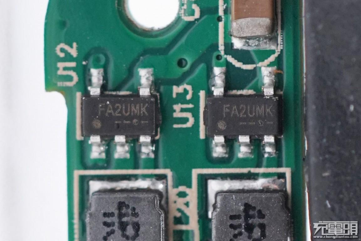 两颗天钰的FP6381A同步整流降压转换器,旁边是两颗4R7降压电感。