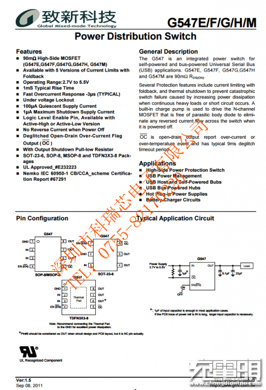 USB3.0接口配电开关G547E,来自GMT致新科技。