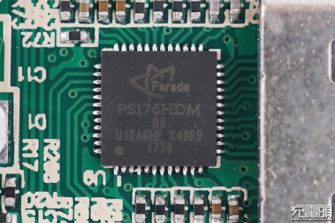 Parade谱瑞PS176HDM DP转HDMI芯片,将USB-C口中的DP信号转为HDMI,充电头网了解到,该芯片支持HDMI2.0标准,可以做到4K 60Hz输出。充电头网了解到采用这款芯片的还有联想USB-C迷你集线器、华为高清投屏连接线(CP76)、Moshi摩仕 USB-C多媒体转接器等产品
