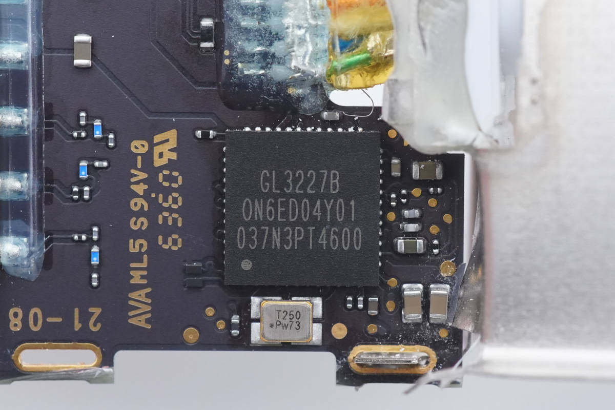 一颗丝印T250的晶振用于为GL3227B提供时钟。