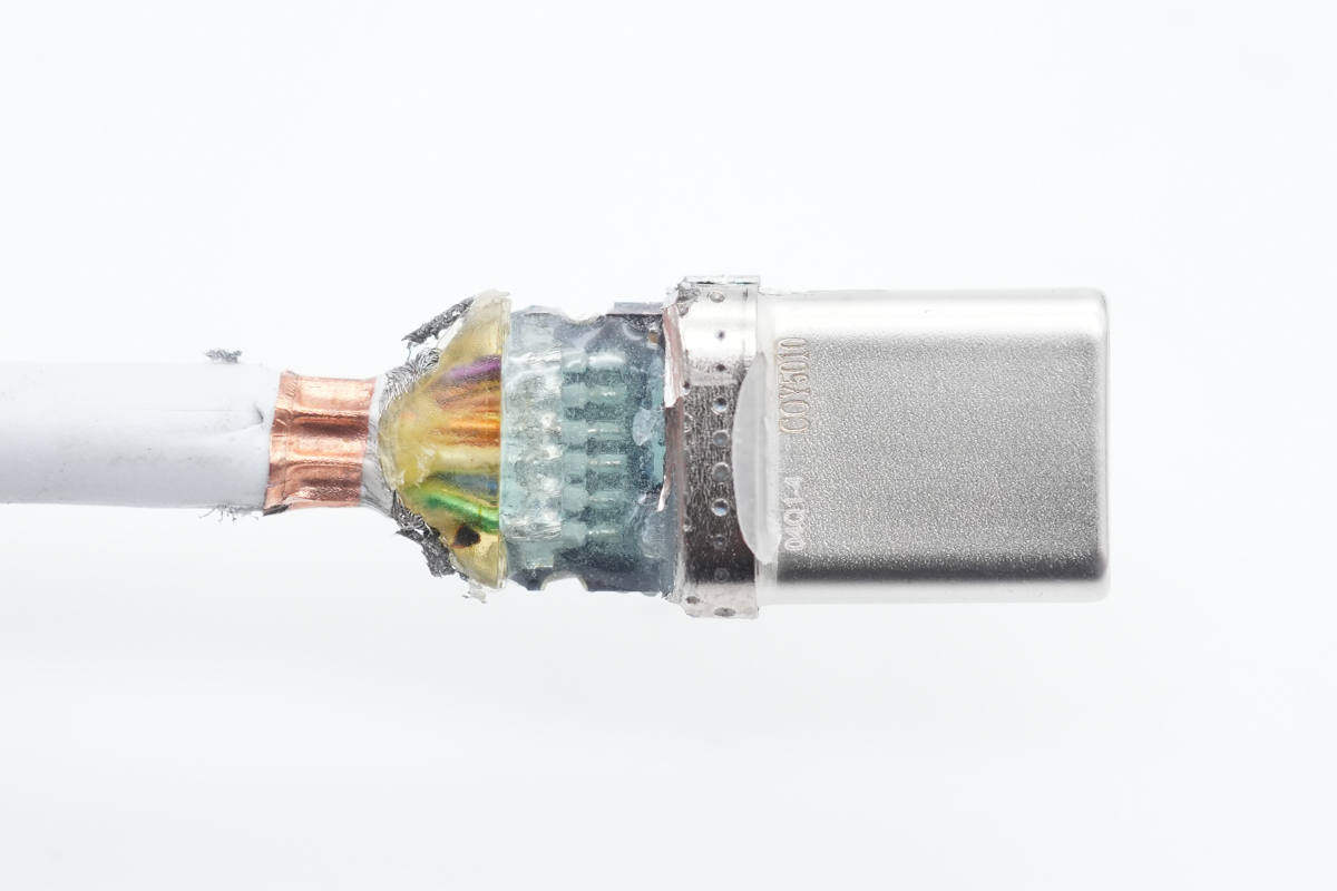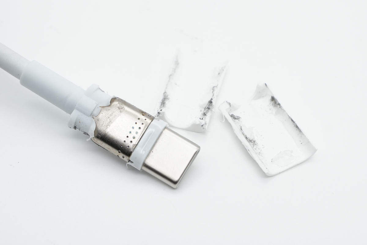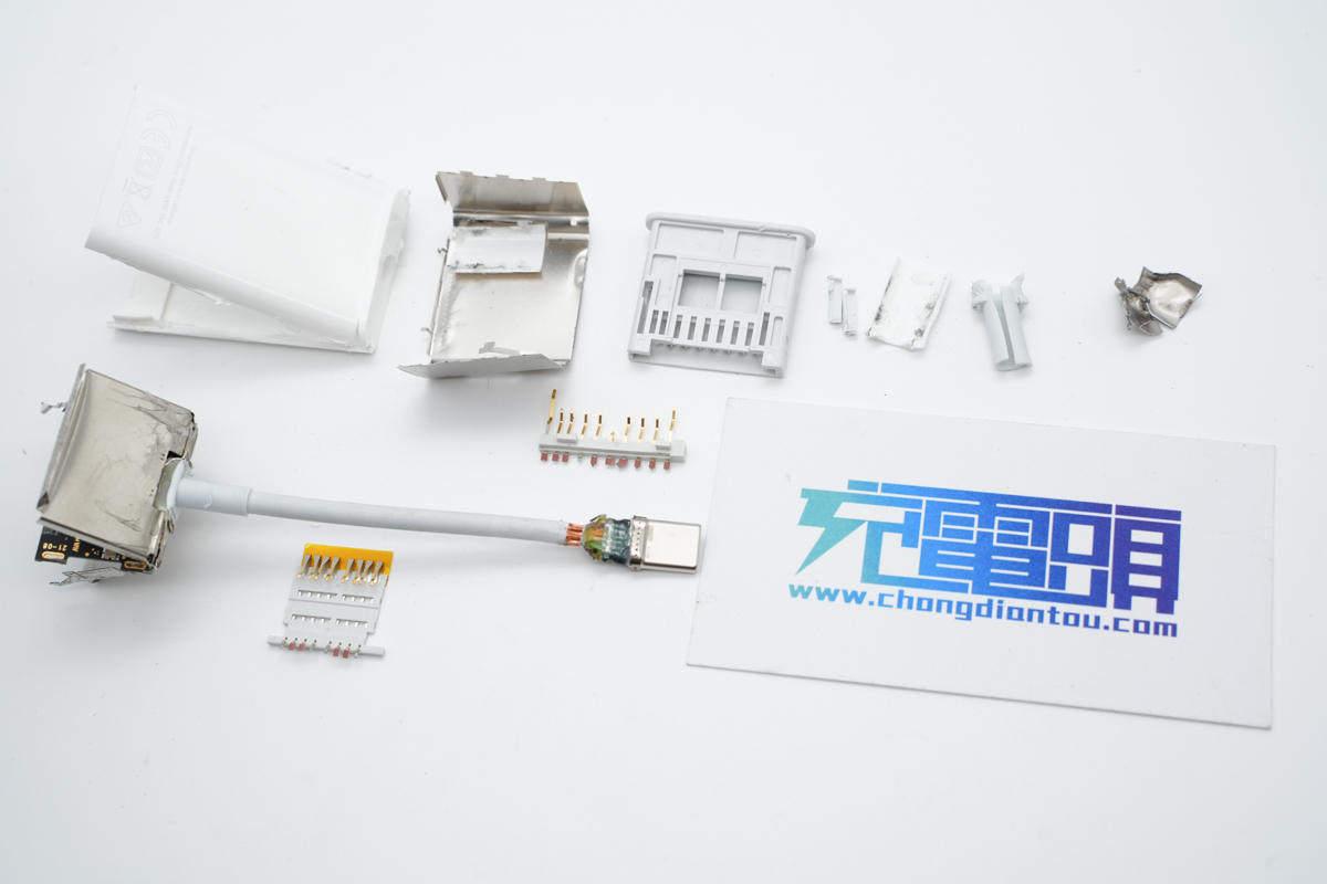 最后简单拆解一下USB-C端子部分,还是使用切割机切开塑料外壳。