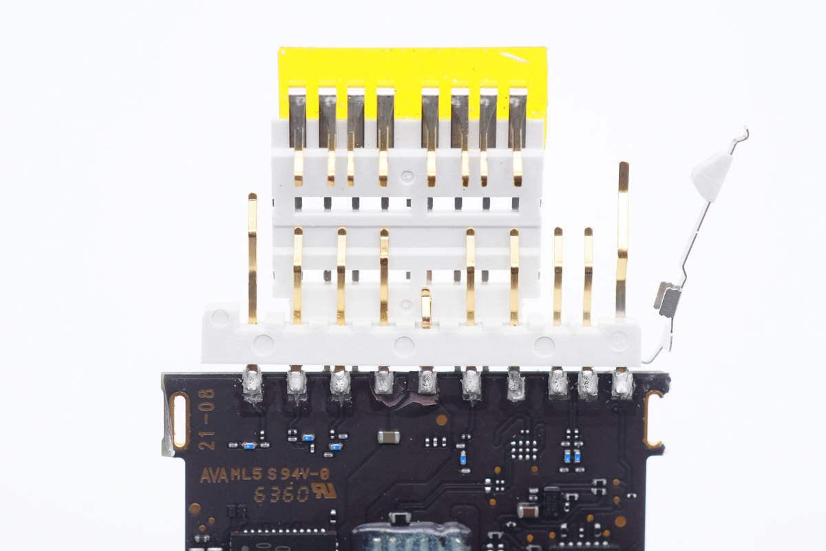 侧面一览,钢套穿过PCB开孔焊接固定,并点焊成为一个整体。