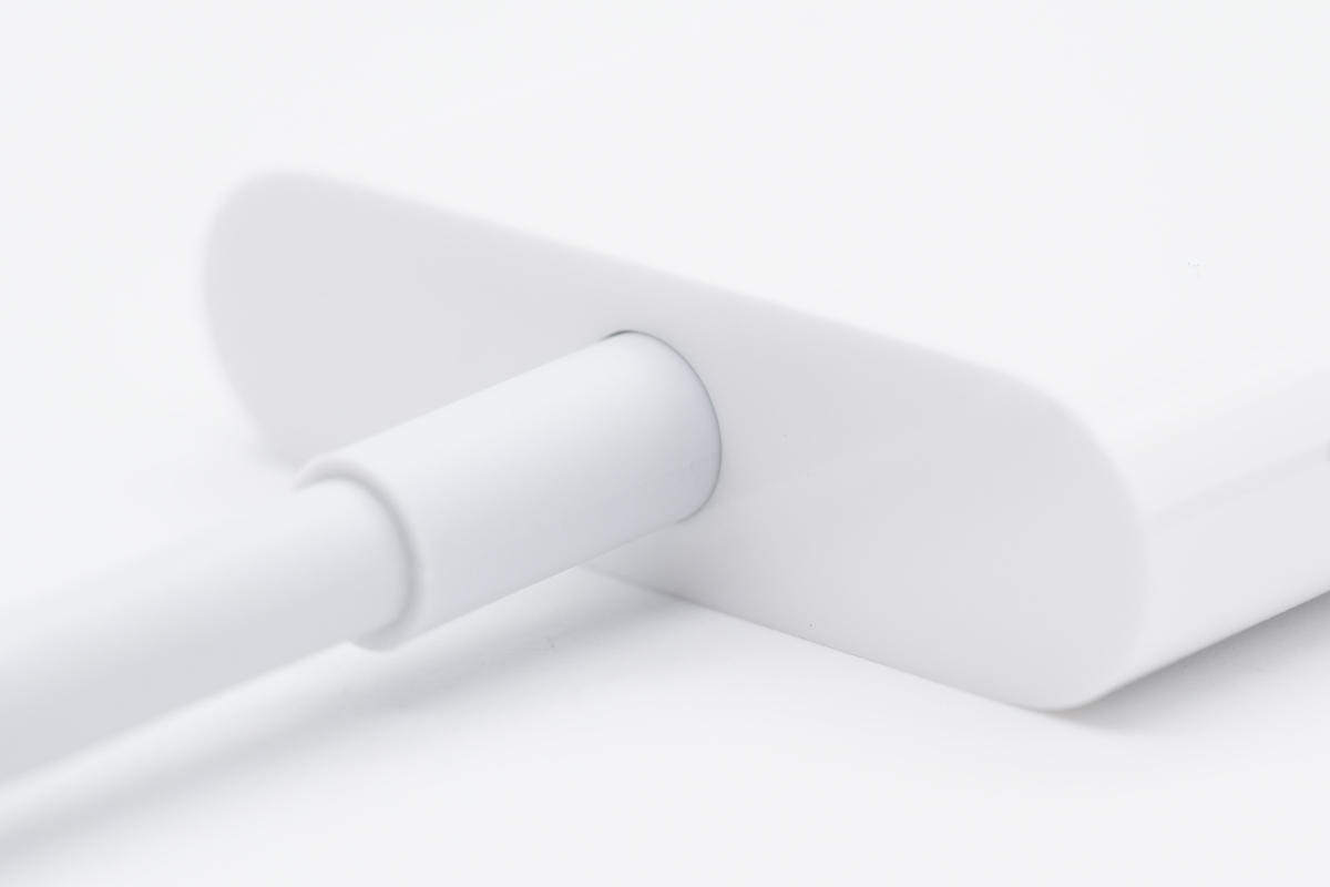 苹果USB-C to SD卡读卡器采用苹果一贯的简约设计风格,产品通体白色,两端外壳均亮面处理,两侧为半圆弧面。
