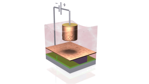 电镀铜,制作电路上面这些过程基本已经形成了晶体管结构,接下来就要将这些成型的晶体管利用线路连接起来,而连接的线路就是铜。利用硫酸铜溶液电解在直流电下进行电解,从而在表面沉积形成一层铜。