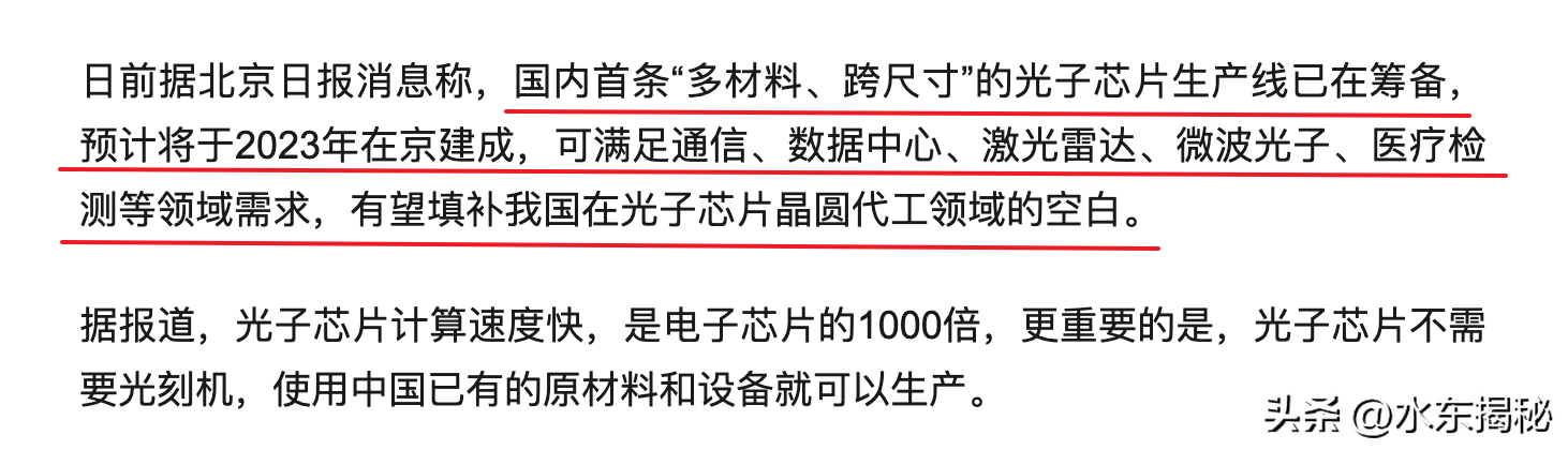 所以,光子芯片,它是实实在在地、在我们国内大力发展芯片产业,这一切,也并不是什么噱头。你看,以新华社、人民网共同报道的一篇,以科技革命的战略眼光布局光子芯片的重要文章,文中更是将光子芯片,当成打破光刻机垄断的杀手锏,更认为它会带领中国,掀起一场新的芯片革命。