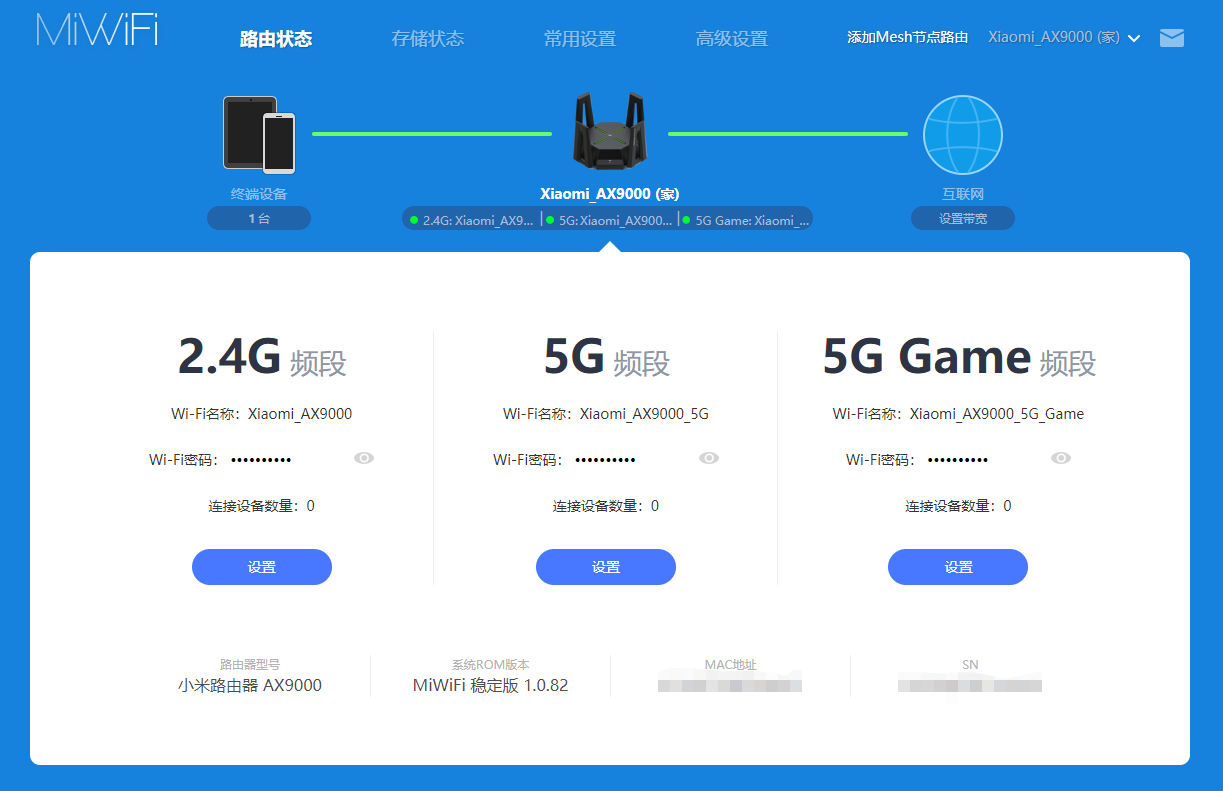 按照小米路由器 AX 系列的命名方式就能猜出来,AX9000 的总速率应该是在 9000MHz 左右,官方数据上这款路由器拥有 8354Mbps+600Mbps 的总计速率,其中 2.4G 频段最高速率为 1148Mbps、5G 频段最高速率为 2402Mbps,5G Gaming 频段最高速率为 4804Mbps,合起来就是 8354Mbps 速率;而双频设计的 AIoT 天线两个频段速率合计为 600Mbps。