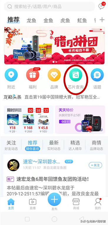 说了这么多,肯定也会有人不信,非得有个书面证明方能相信!那就来龙巅APP用芯片查询功 能试试看,可以通过芯片的唯一编码了解到龙鱼的渔场来源、血统、等级区分以及授权代理等情况,也可以来确认此鱼的真实性和身份等级等等!