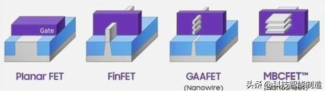 到了3nm之后,目前的晶体管已经不再适用,目前,半导体行业正在研发nanosheet FET(GAA FET)和nanowire FET(MBCFET),它们被认为是当今finFET的前进之路。